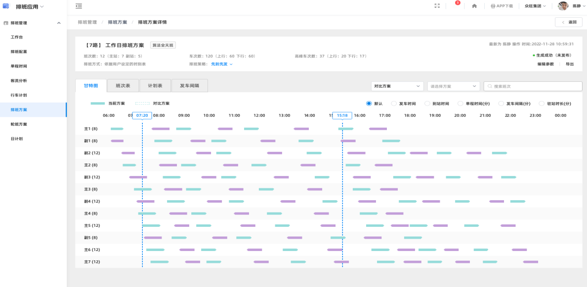 一是將客運(yùn)公司現(xiàn)有的營(yíng)運(yùn)計(jì)劃自動(dòng)導(dǎo)入平臺(tái)排班系統(tǒng),無(wú)需專(zhuān)職調(diào)度人員管理,系統(tǒng)可自動(dòng)記錄該計(jì)劃下所生產(chǎn)的營(yíng)運(yùn)數(shù)據(jù),包括營(yíng)運(yùn)的準(zhǔn)點(diǎn)率、完成率等數(shù)據(jù),并且系統(tǒng)可根據(jù)自動(dòng)記錄的營(yíng)運(yùn)數(shù)據(jù),提供營(yíng)運(yùn)計(jì)劃優(yōu)化建議,為客運(yùn)公司持續(xù)優(yōu)化營(yíng)運(yùn)計(jì)劃提供依據(jù)。