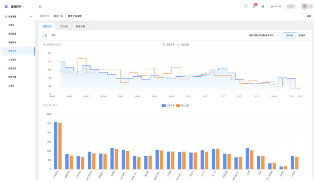營運計劃制定基于公交歷史客流數(shù)據(jù)分析結果,全面掌握線路客流在各時段、各方向、各斷面上的規(guī)律,并結合企業(yè)人、車資源情況,自動生成營運計劃,同時可通過在線評估(模擬線路車輛滿載率),不斷優(yōu)化排班方案。這種排班模式可有效減少空駛里程,杜絕“空車拉板凳”現(xiàn)象,實現(xiàn)降本增效的目標。