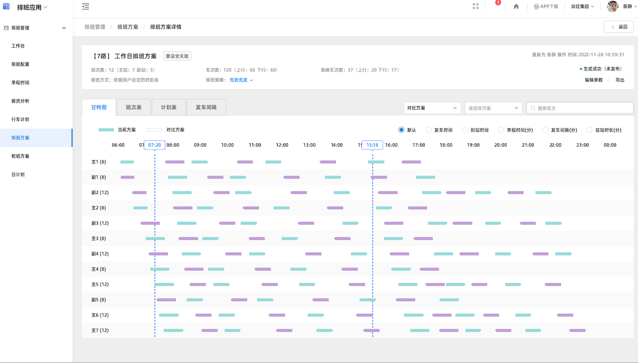 在營運管理方面,通過對客流數(shù)據(jù)、營運數(shù)據(jù)、資源數(shù)據(jù)進行分析、挖掘,為縣域客運主體構(gòu)建數(shù)據(jù)驅(qū)動型經(jīng)營管理模式。其中在排班上,對全縣客流歷史數(shù)據(jù)采集、分析,基于客流規(guī)律和資源配置自動生成營運計劃,讓運力匹配客流需求,進而實現(xiàn)減人、減車目標(biāo)。